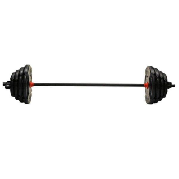 Barbell comes in three pieces and has a 100lb maximum capacity